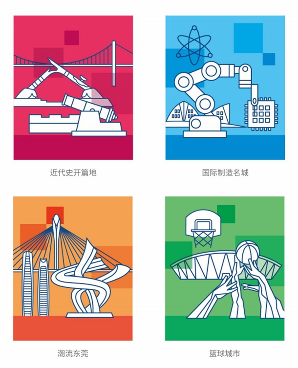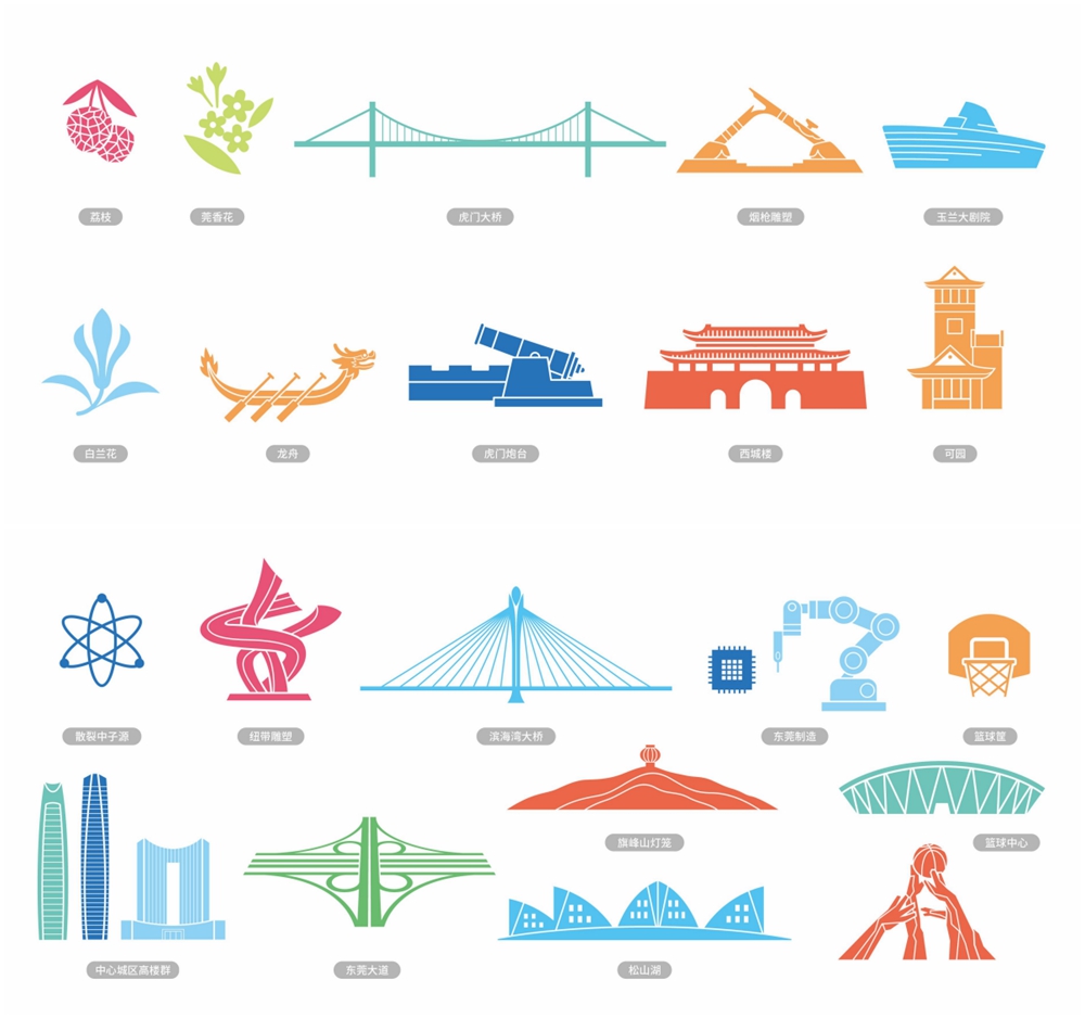在配套发布的新版《东莞城市品牌视觉识别系统管理手册》中,虎门大桥、莞香花、西城楼、可园、龙舟、东莞制造、篮球中心、滨海湾大桥等20种能够代表东莞的辅助图形进一步呈现出多维、立体的城市形象。
