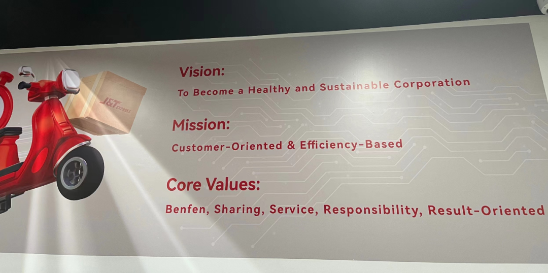 极兔埃及办公区的墙上挂着的企业文化,核心价值观里的“本分”因为没有对应英文而用拼音呈现。图源:李小天 摄