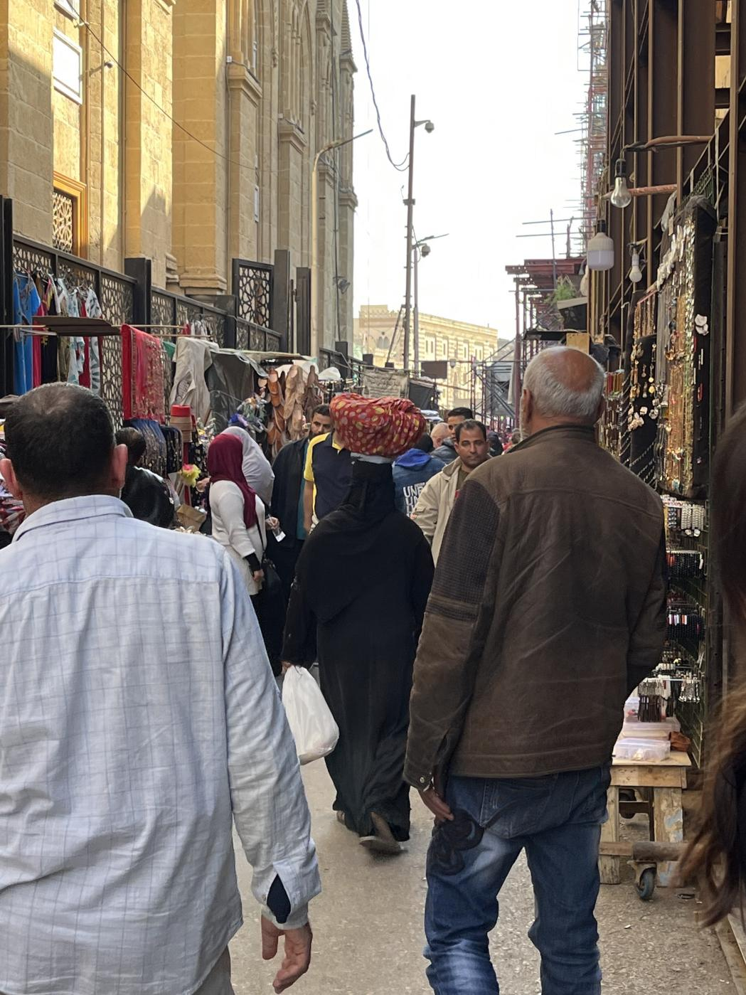 热爱徒步、夜跑的人在开罗会备感失落,因为这里没有人行道,更不用提自行车道。狭窄的道路上交错行驶着比亚迪、奇瑞,公共大巴车、小巴车,摩托车,货运卡车,间或可以看到牛、马和骆驼穿插其中悠闲走过。行人只能在道路一侧密集摊贩的缝隙间辗转腾挪,还要注意随时会从后方呼啸驶来的各式车辆。