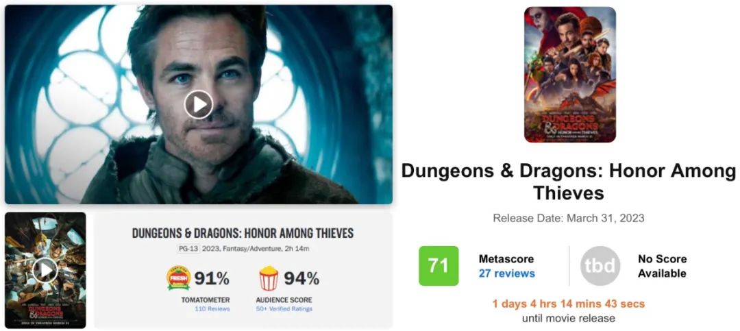 现在,有了好口碑作后盾,《龙与地下城:侠盗荣耀》至少为这个IP留下了一个能够拿得出手的影改作品。无论最终这部影片能够在商业市场走多远,影片本身的创作经验都已经足够成为这个行业的又一成功样本。