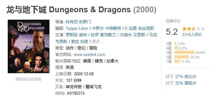 《龙与地下城》是一个早在1974年就诞生的经典桌游,在欧美市场有极强的号召力。作为一部起源型IP,该作最伟大之处在于创造了一套包括世界观、种族、文化等在内的完整DnD体系,这对后来角色扮演游戏开发乃至相关类型影视创作都带来了深远的影响。