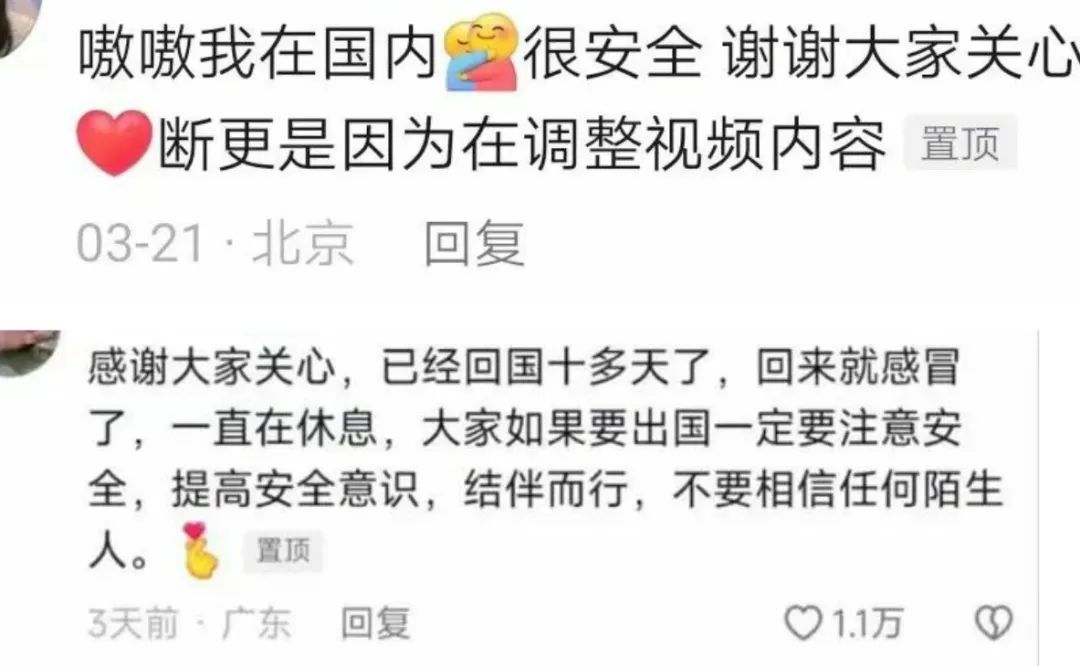 值得玩味的是,在泰国官方和国内权威媒体相继辟谣后,“人间蒸发”的网红们又纷纷出来发表声明,称是因为身体不适、账号转型等原因造成了同一时间停更的“巧合”,且IP地址均显示在国内。