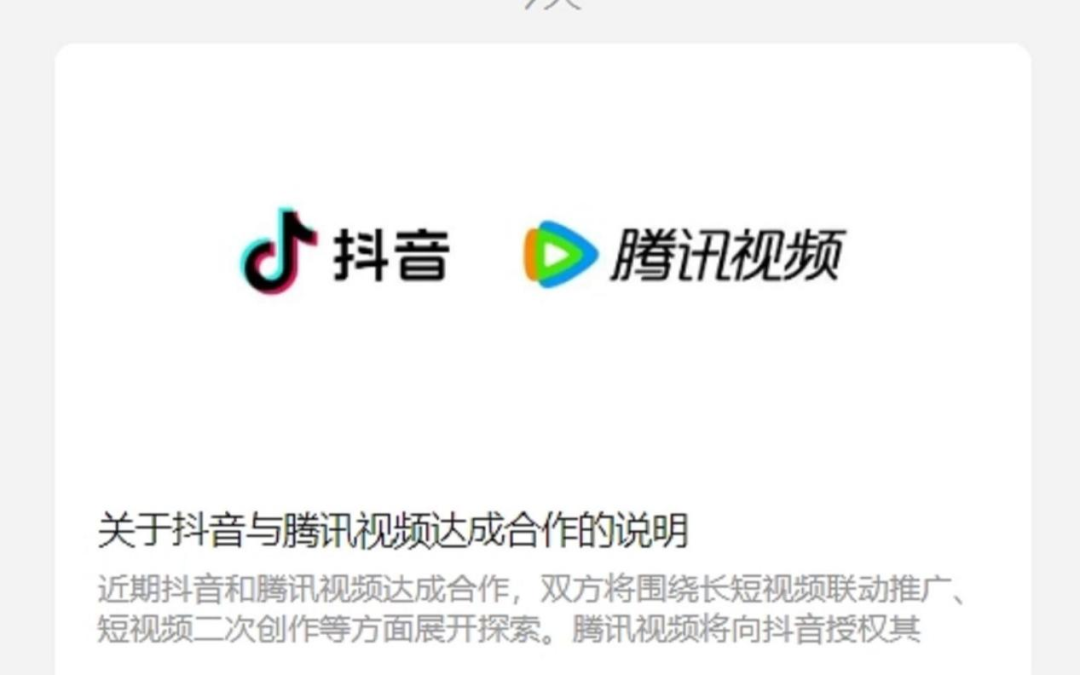 近年来,长短视频融合趋势越发显著。继搜狐视频、爱奇艺与抖音达成合作关系之后,“头腾大战”也正式落下帷幕,4月7日,腾讯视频版权库对抖音部分开放,双方正式宣布将围绕长短视频联动推广、短视频二创等方面合作。