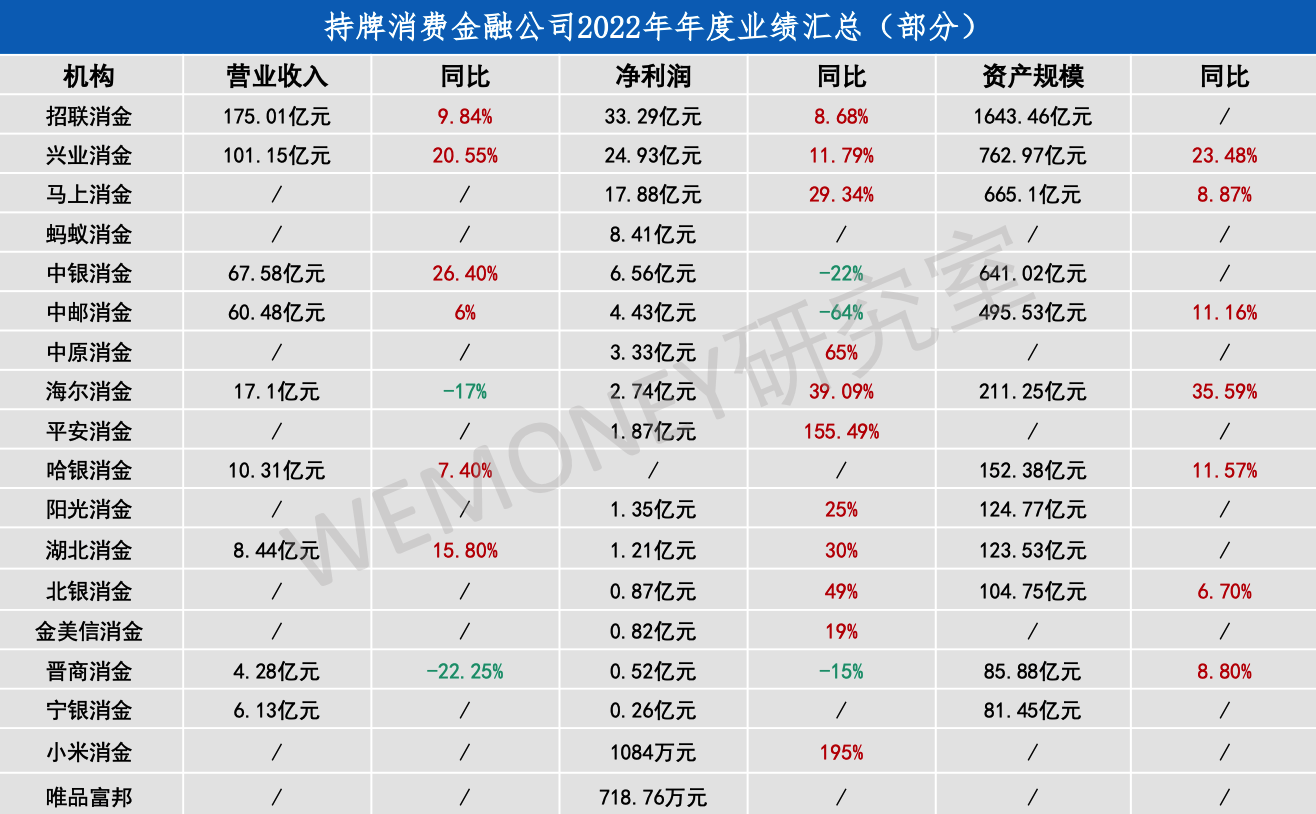 据WEMONEY研究室统计,截至4月13日,已有19家持牌消费金融公司(部分)业绩数据披露。整体上看,2022年,消费金融公司业绩分化明显,马太效应更加显著。