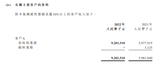 2022年,上市公司现代牧业原料奶收入99.45亿,其客户A就为其贡献了92亿的收入。