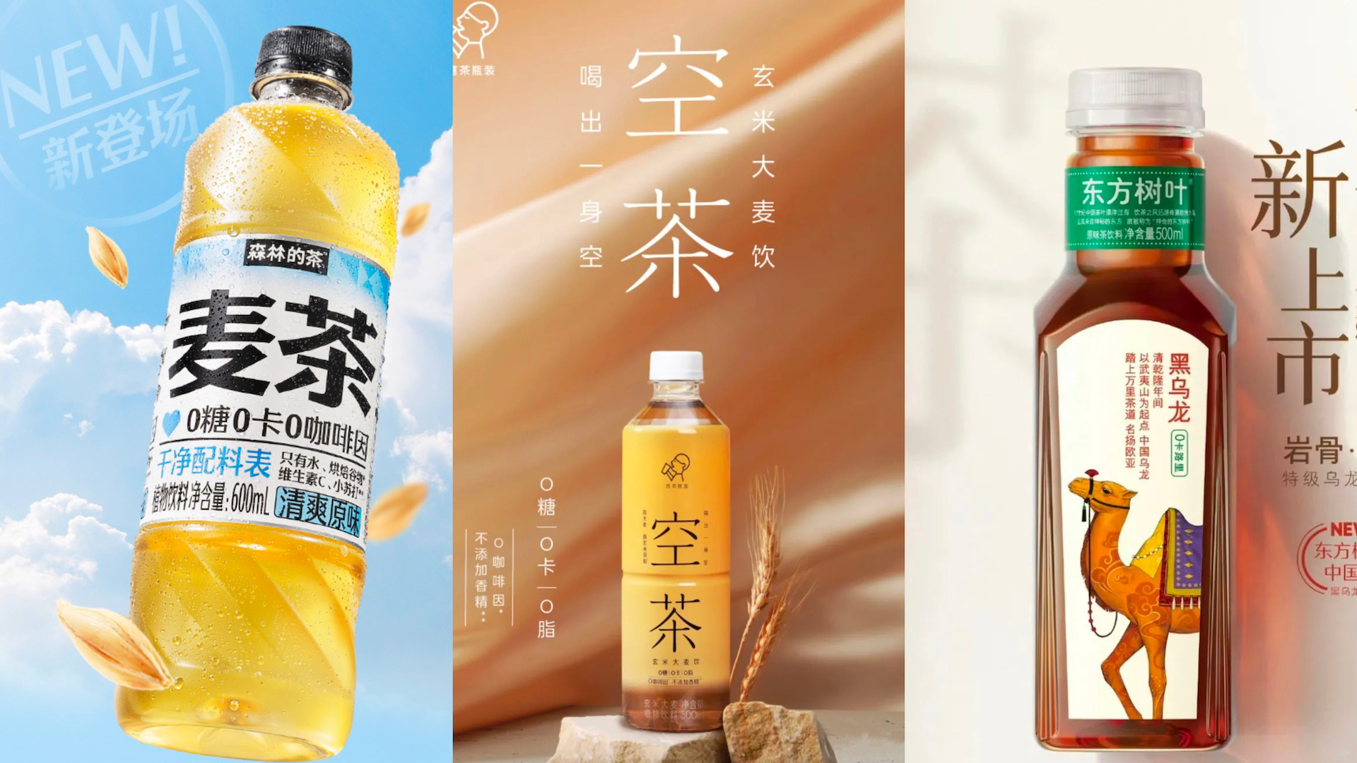 同样是4月,元气森林宣布上新无糖植物饮料森林的茶“麦茶”,强调0咖啡因,“晚间都能放心喝”;喜茶则推出了“空茶”玄米大麦植物饮料,由玄米和大麦两种谷物调配比例混合,口感近似茶汤,同样是0糖、0卡、0咖啡因。