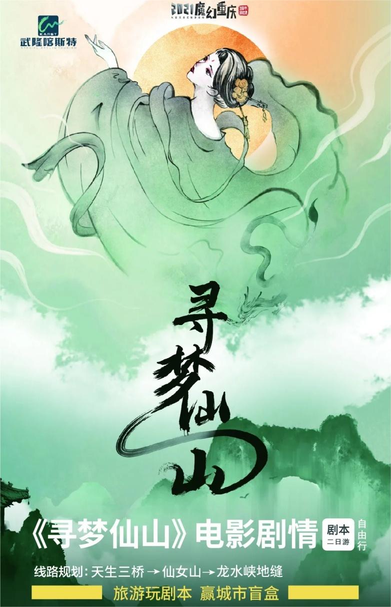 兼具电影的剧情、古风为一体的《寻梦仙山》“剧本杀”,以沉浸式旅游方式在重庆武隆启动,作为全国首创的大型城市及景区沉浸式剧本旅游项目,该剧本杀将原创剧本内容注入景区景点,连续七天打造几百位NPC互动演绎的“剧本杀”旅行。游客(玩家)们将扮演仙侠故事中的修行弟子,一路游山玩水,一路开动脑筋挖掘渡劫飞升中的阳谋、阴谋和秘诀……