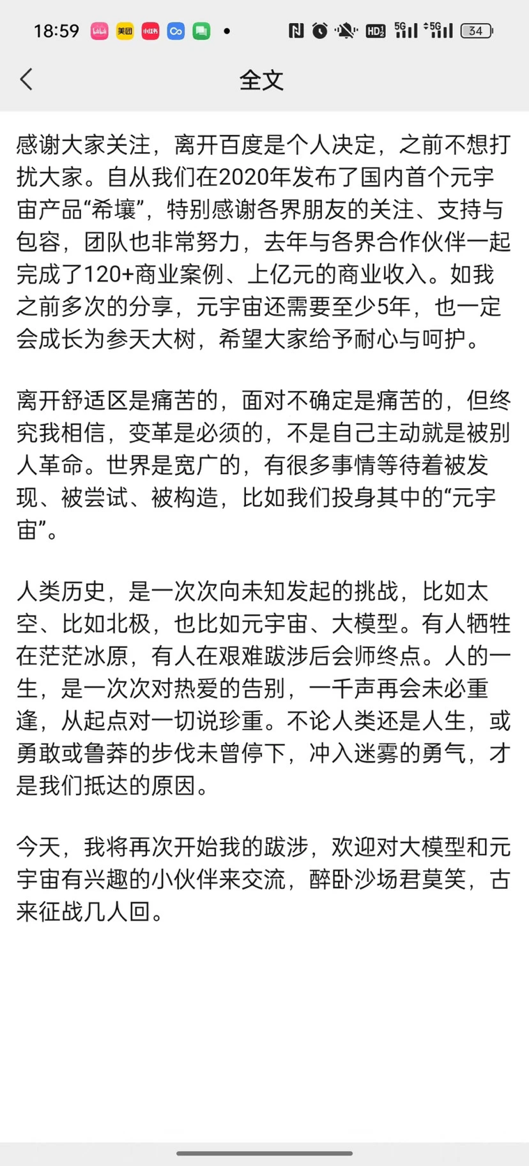 有意思的是,马杰刚刚成为百度元宇宙负责人的时候也曾豪言:“我愿意为此付出我的全部”。