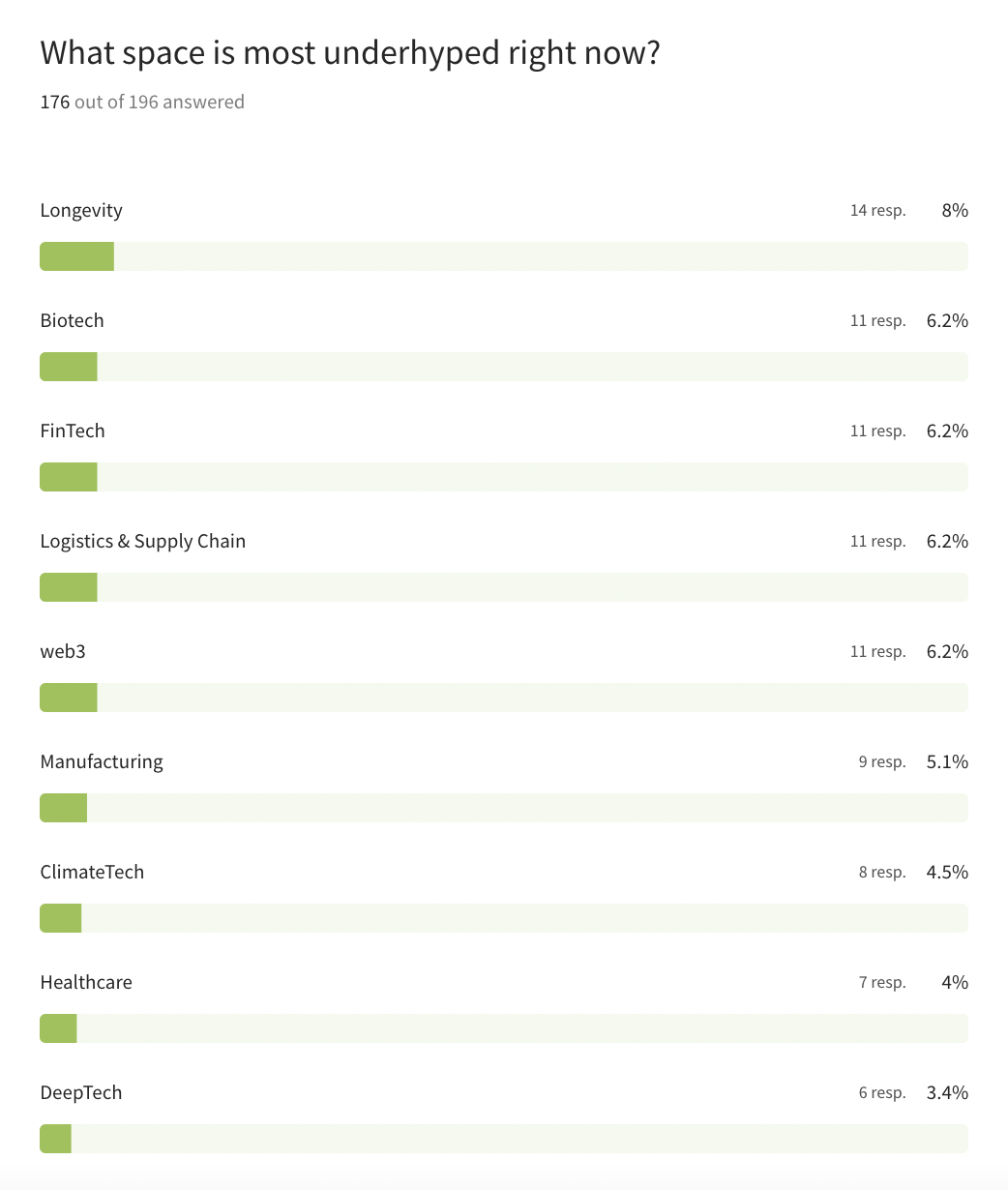 在近期发布的2023Q1新兴VC基金管理人调查报告中,91/185位基金管理人将AI &ML(机器学习)列为当前泡沫最大的投资方向。