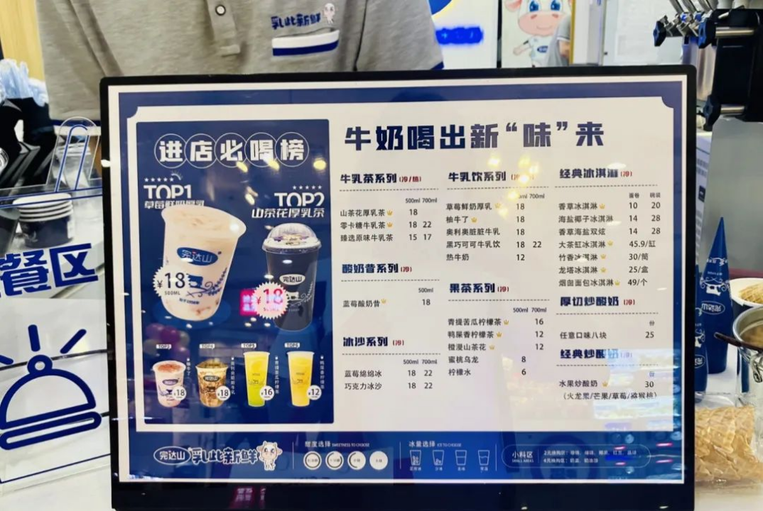 二是除主推爆款冰淇淋外,完达山大多数产品基本毫无特色,如厚乳茶、牛乳茶等均是市面上其他奶茶店司空见惯的单品。