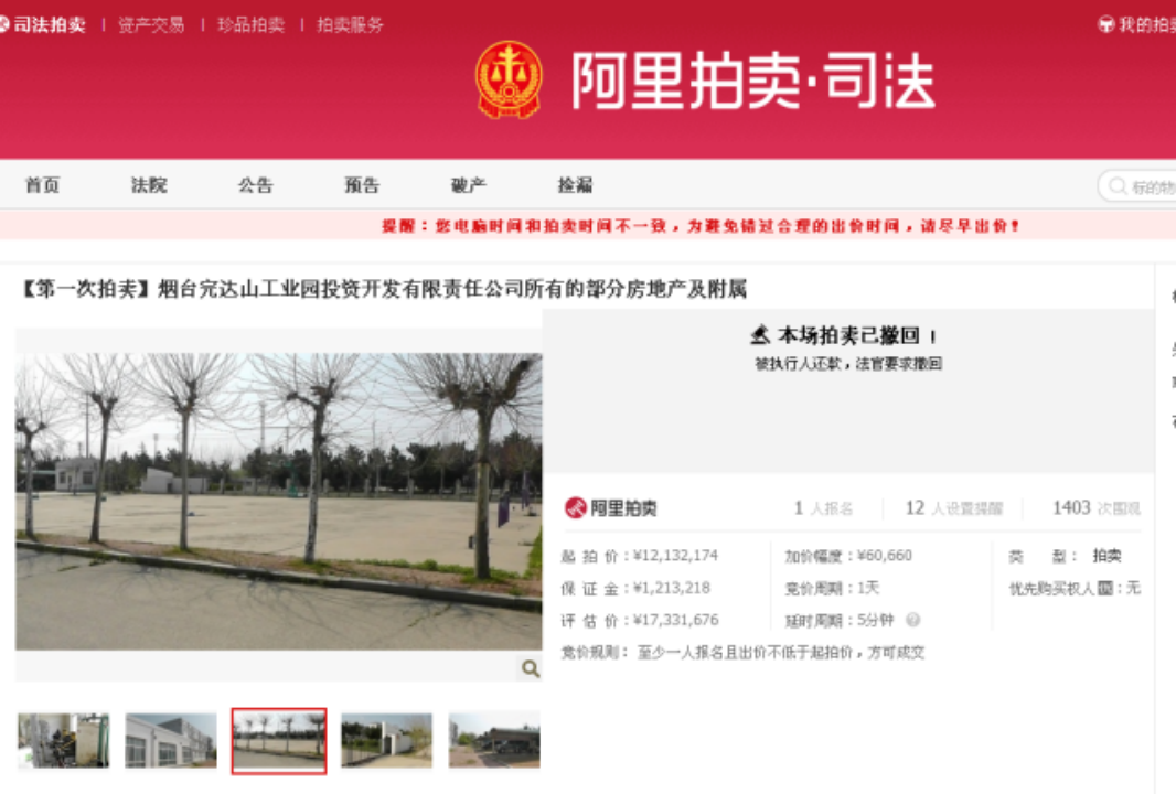 次年,烟台完达山工业园投资开发有限责任公司被爆出资金链断裂,拖欠员工、经销商、供应商多方欠款,背负高达近1亿元债务。甚至在2019年,烟台完达山的部分建筑物、房产还到了公开拍卖的地步,将拍卖所得用于偿还拖欠的货款和工资等债务。