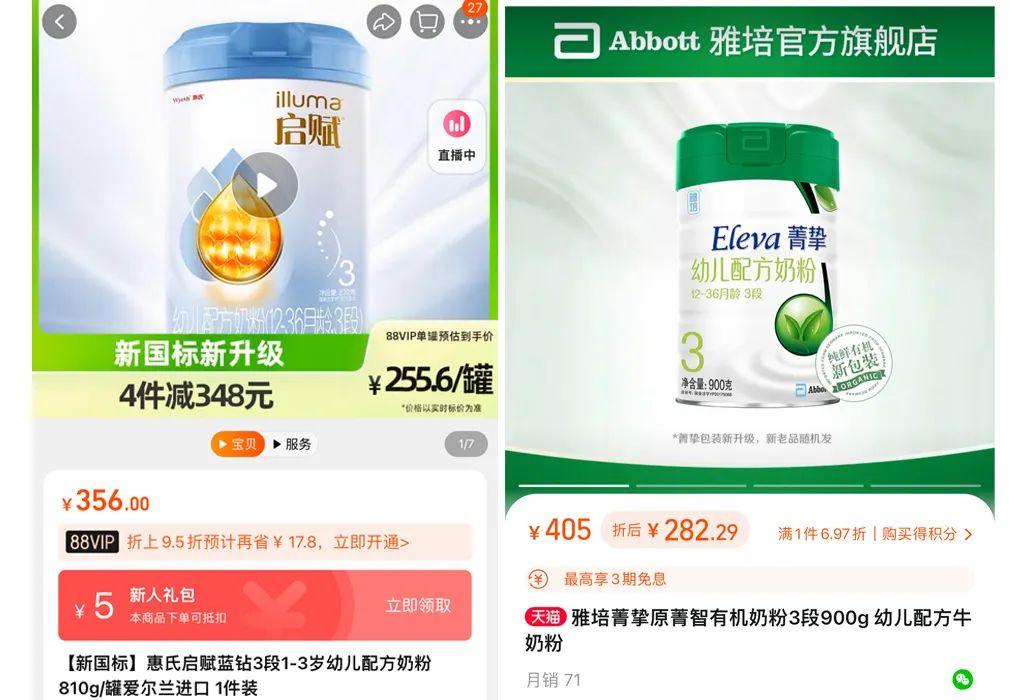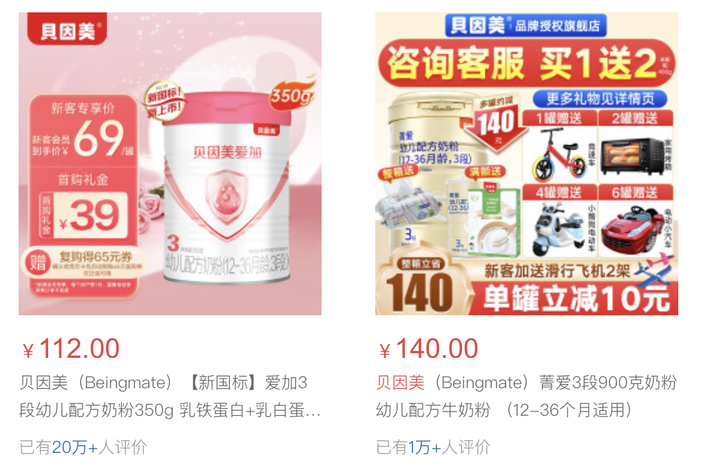 “同样一罐500g奶粉200、300元的价格国产可以选择飞鹤或是伊利,更高价位的国际品牌可以选择美赞臣、美素佳儿,品牌更有保证。”一位宝妈对「摩登消费」表示。