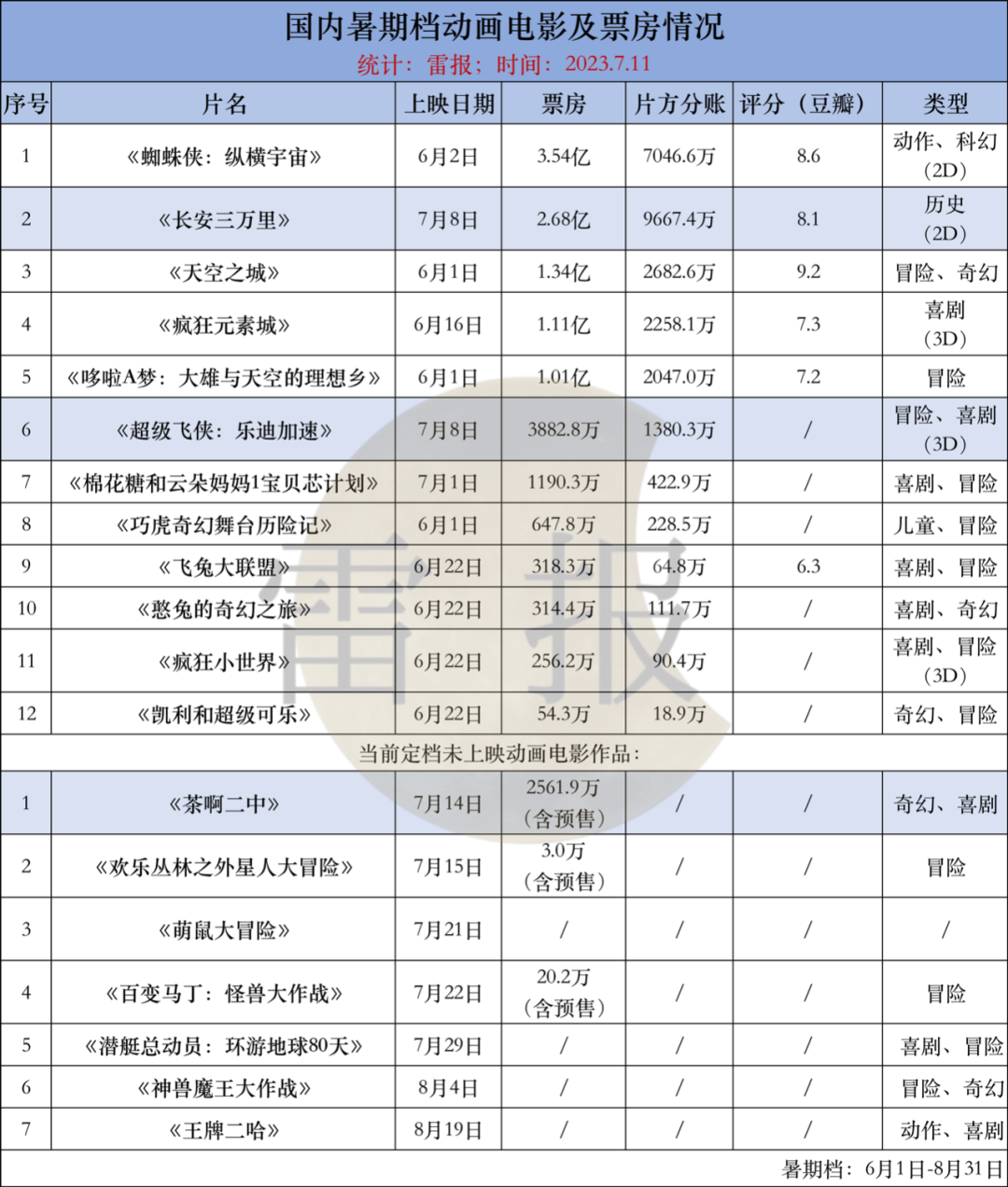 暑期档有多少动画电影上映,“票房战况”如何?