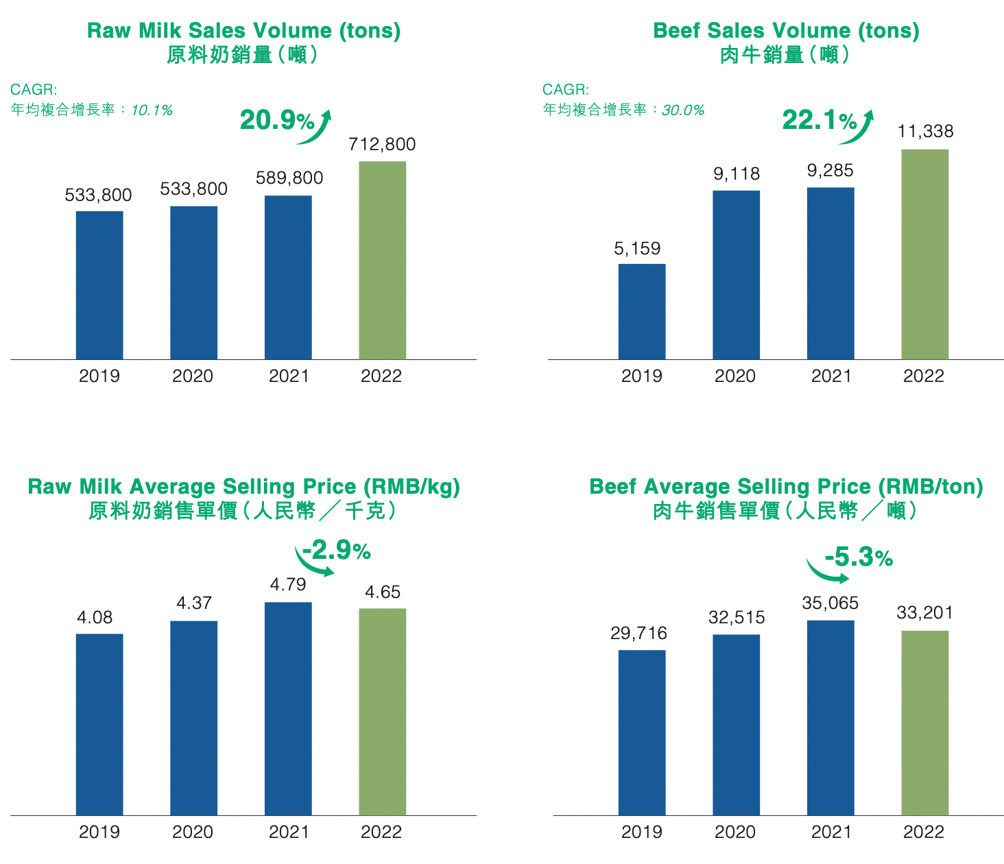 2022年年报显示,澳亚集团的两大主要业务原料奶和肉牛的销量都有20%以上的同比增长,但原料奶单价和肉牛单价都出现了不同程度的下滑,这意味着这两大业务的毛利被进一步压缩。