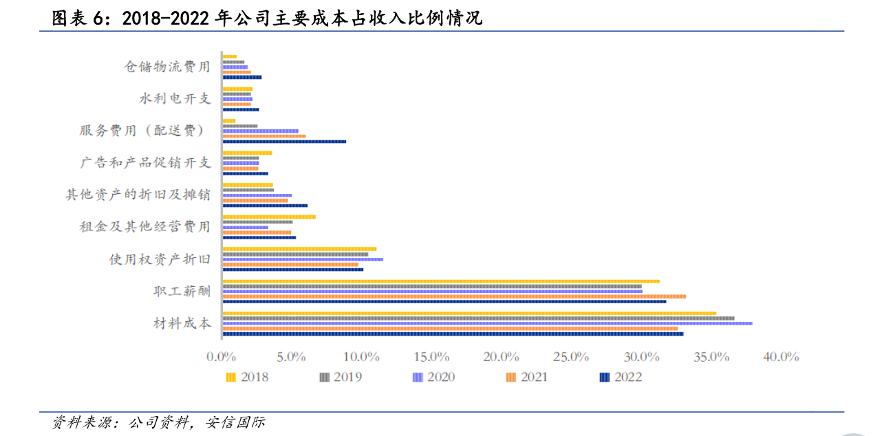 翻开奈雪的财报,在主要成本收入比例一栏里,材料成本和职工薪酬首当其冲,甚至远超其它项目。