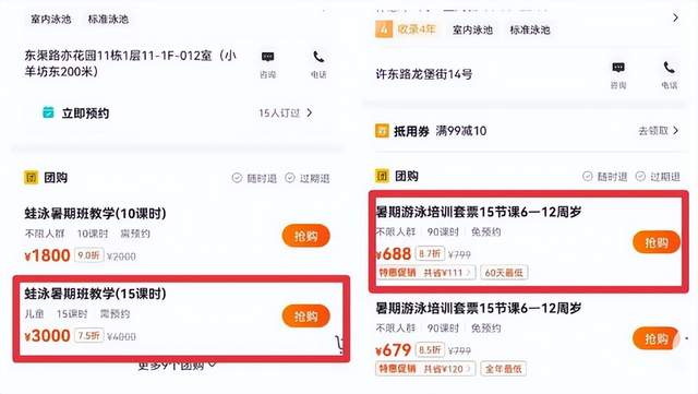 看着昂贵培训费用的我,突然想到,既然我们原本就有回老家太原玩一段时间的想法,为什么不干脆让孩子回太原学游泳呢。而等我在团购App上开始搜索太原的暑期游泳课时,很快就被“高性价比”的课程俘获了。