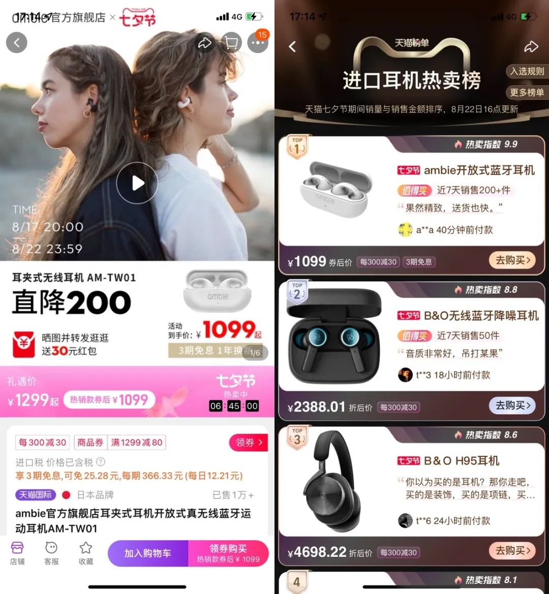 《天下网商》观察到,除了耳机本身在声学科技方面的优势积累外,作为踏入中国的新品牌,ambie的爆发很大程度上得益于针对性的特色营销。